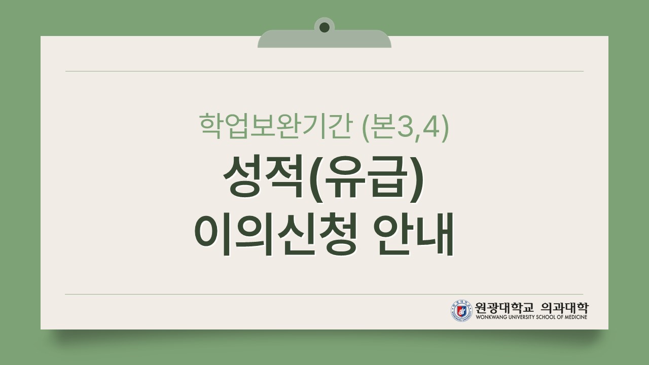 학업보완기간 본3,4 의과대학 성적(유급) 이의신청과