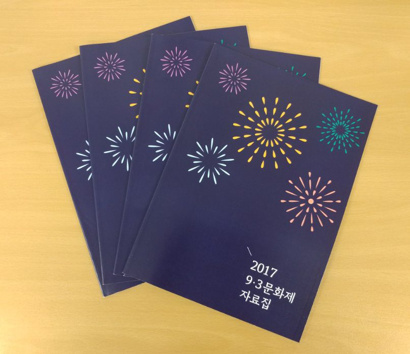 여러분들이 1년 동안 직접 참여하고 만든 작품들을 책으로 엮어 2017학년도 9.3문화제 자료집을