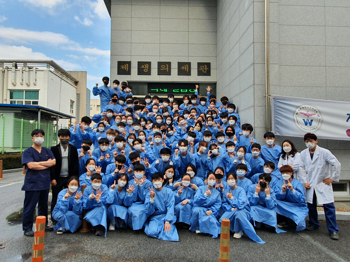2학기 내내 제생의세관에서 진행되었던 의예과 2학년 해부학실습 마지막 날 . 12월의 추운 날씨에도 학생들 모두 드디어 고된 실습이 끝이 났다는 기쁨과 많은 것을 배웠다는 성취감에 다소 흥분되어 보였다.