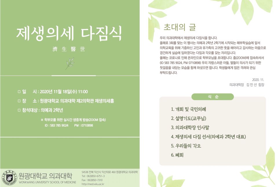 제생의세 다짐식 안내