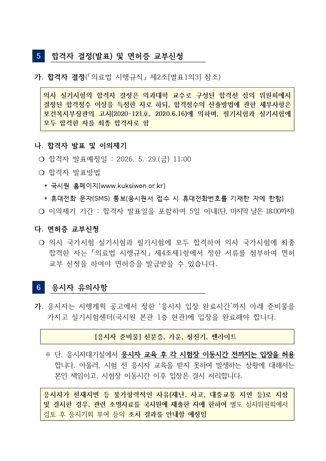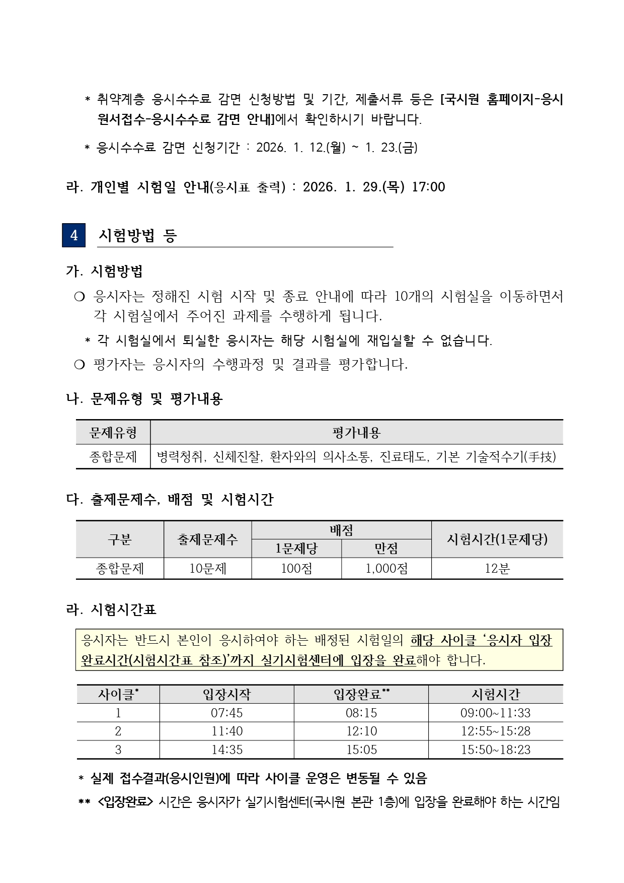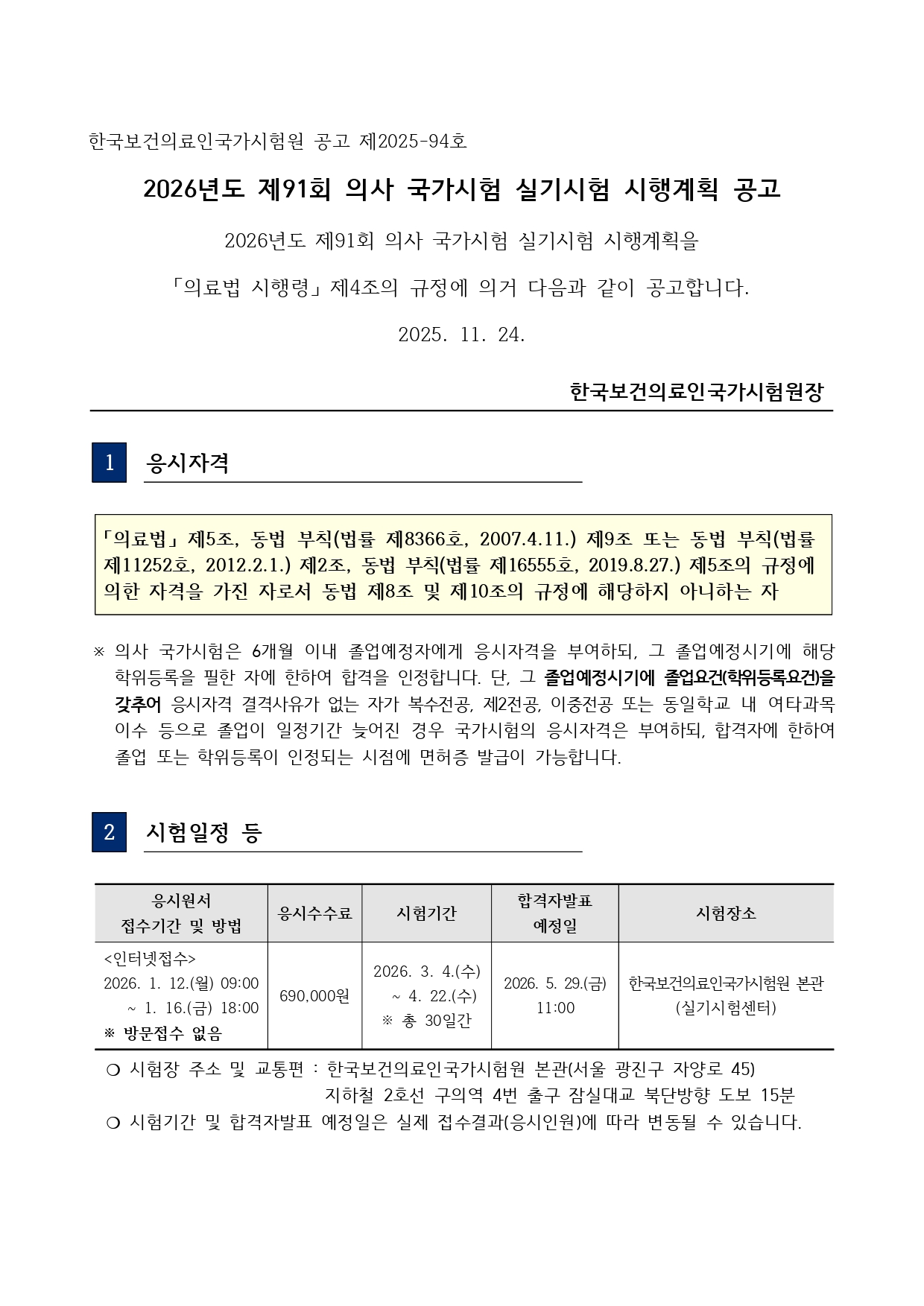 붙임 2026년도 제91회 의사 국가시험 실기시험(2026년 상반기 시행) 응시원서 접수