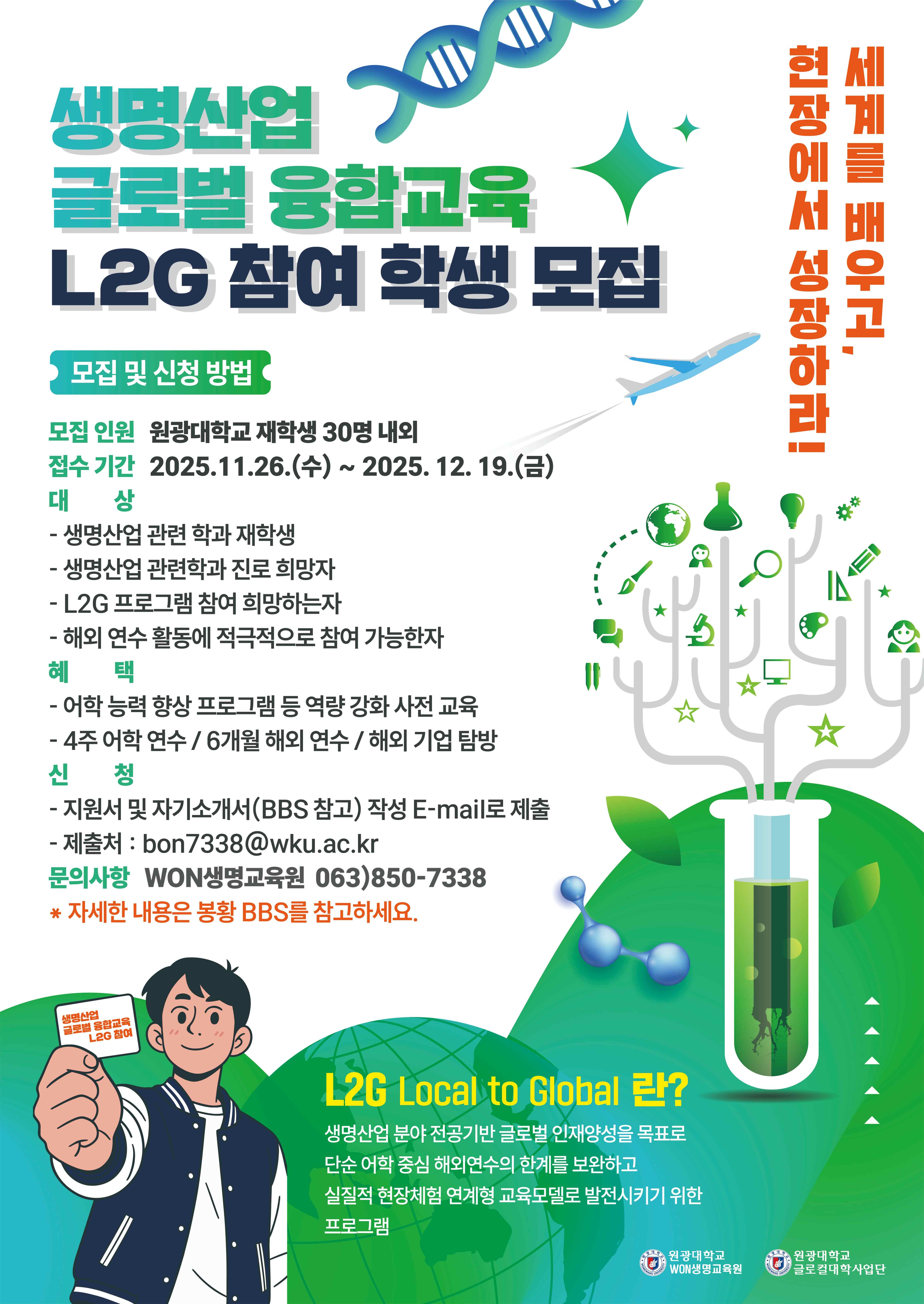 2. 모집대상: 생명산업 분야에 관심있는 원광대학교 재학생(의예과1~2학년)
