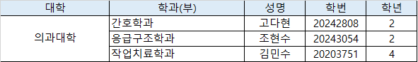 – 단과대학 홈페이지 명단 게시