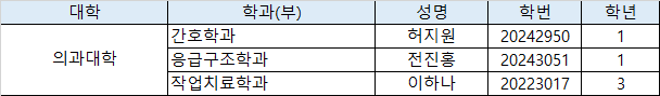 – 직전학기 성적 최우수자로 학과의 추천을 받은 자 (학과(부)별 1명)