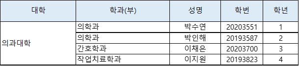 – 직전학기 성적 최우수자로 학과의 추천을 받은 자 (학과(부)별 1명)