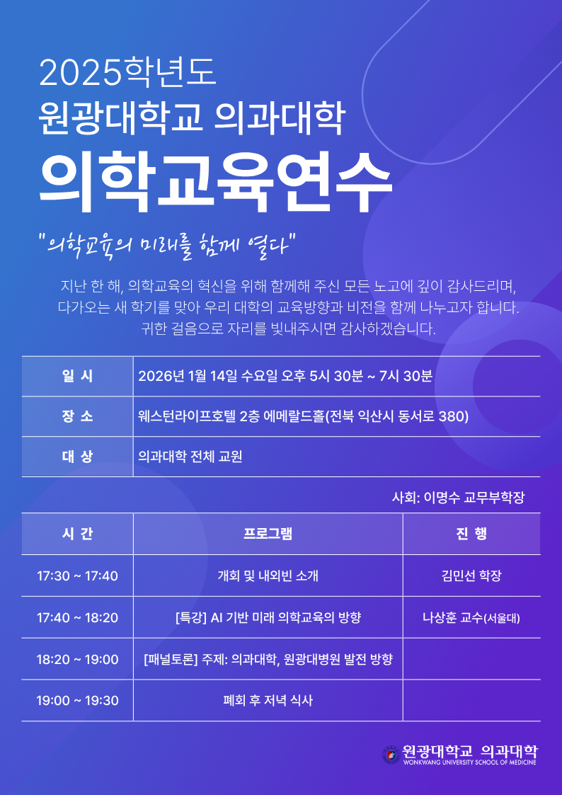 2025 원광대학교 의과대학 의학교육연수 안내