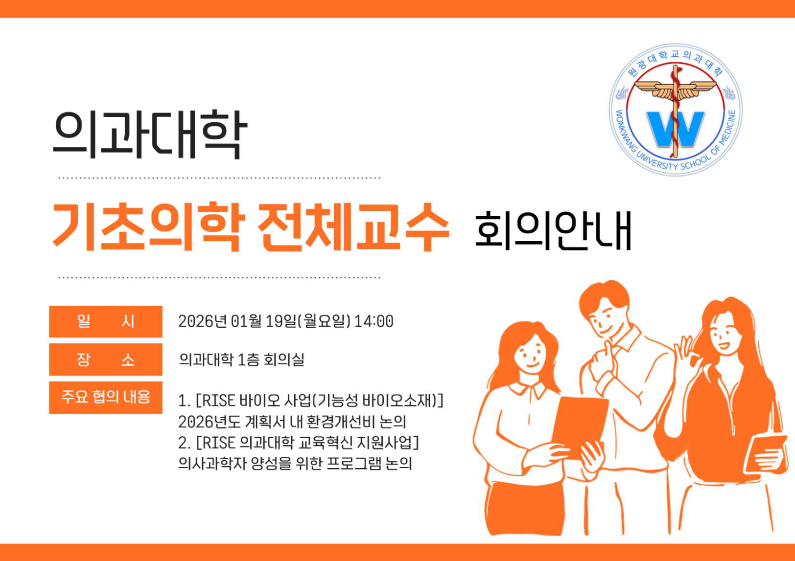 2025학년도 의과대학 기초의학 전체교수회의 개최 안내
